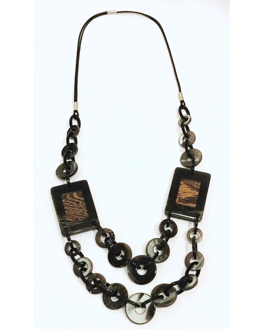 Colar com fio de algodão e peças em acrílico para valorizar a sua produção em grande estilo, deixando-o moderno