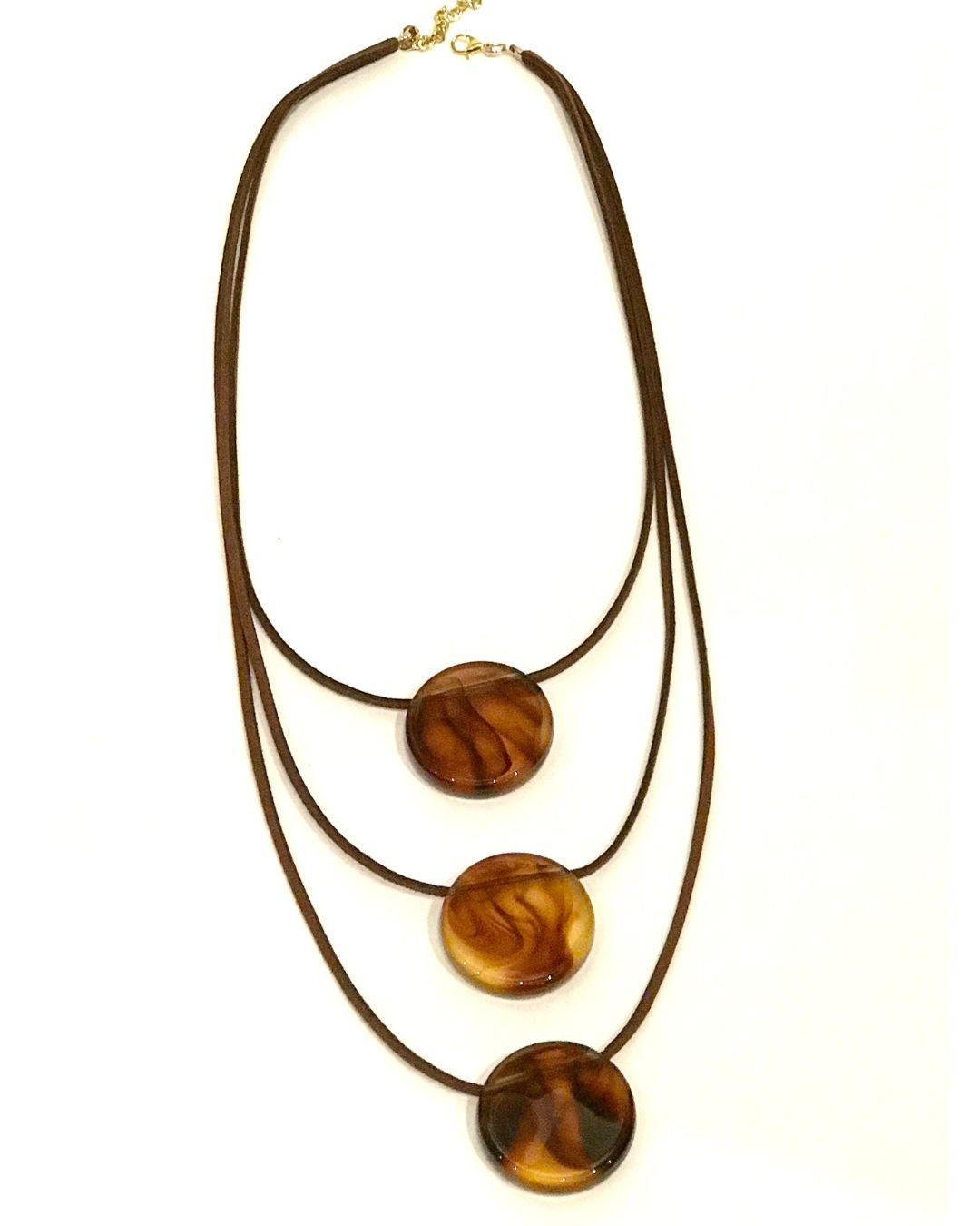 Colar com fios tipo camurça, fecho de metal, peças circulares de resina, Ideal para valorizar o seu look, deixando o visual mais moderno e estiloso.