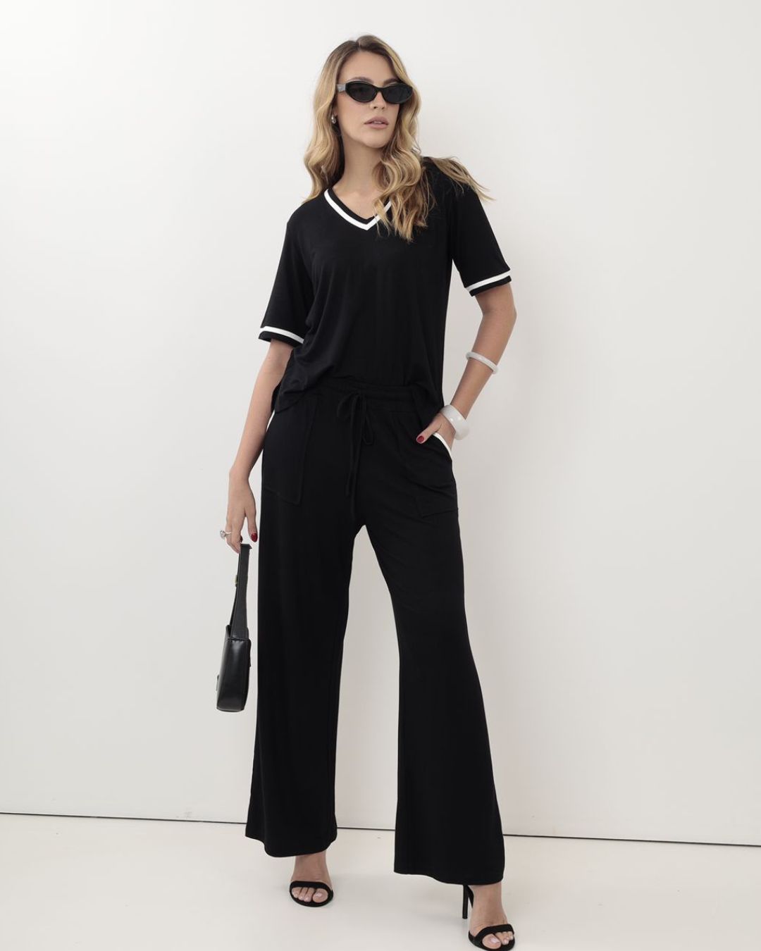 Conjunto Elegante e Confortável, com corte clássico, produzido em malha texturizada, para produções casuais .