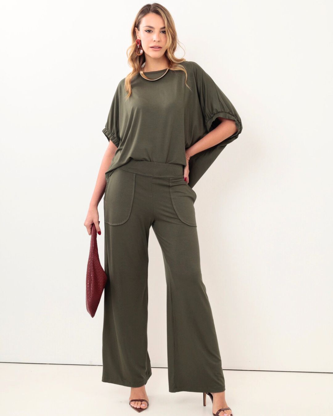 Conjunto com Pantalona, produzido em viscose com elastano, de qualidade superior, que garantem frescor, fluidez e o caimento perfeito. A modelagem moderna , é perfeita para um look casual ou mais sofisticado.