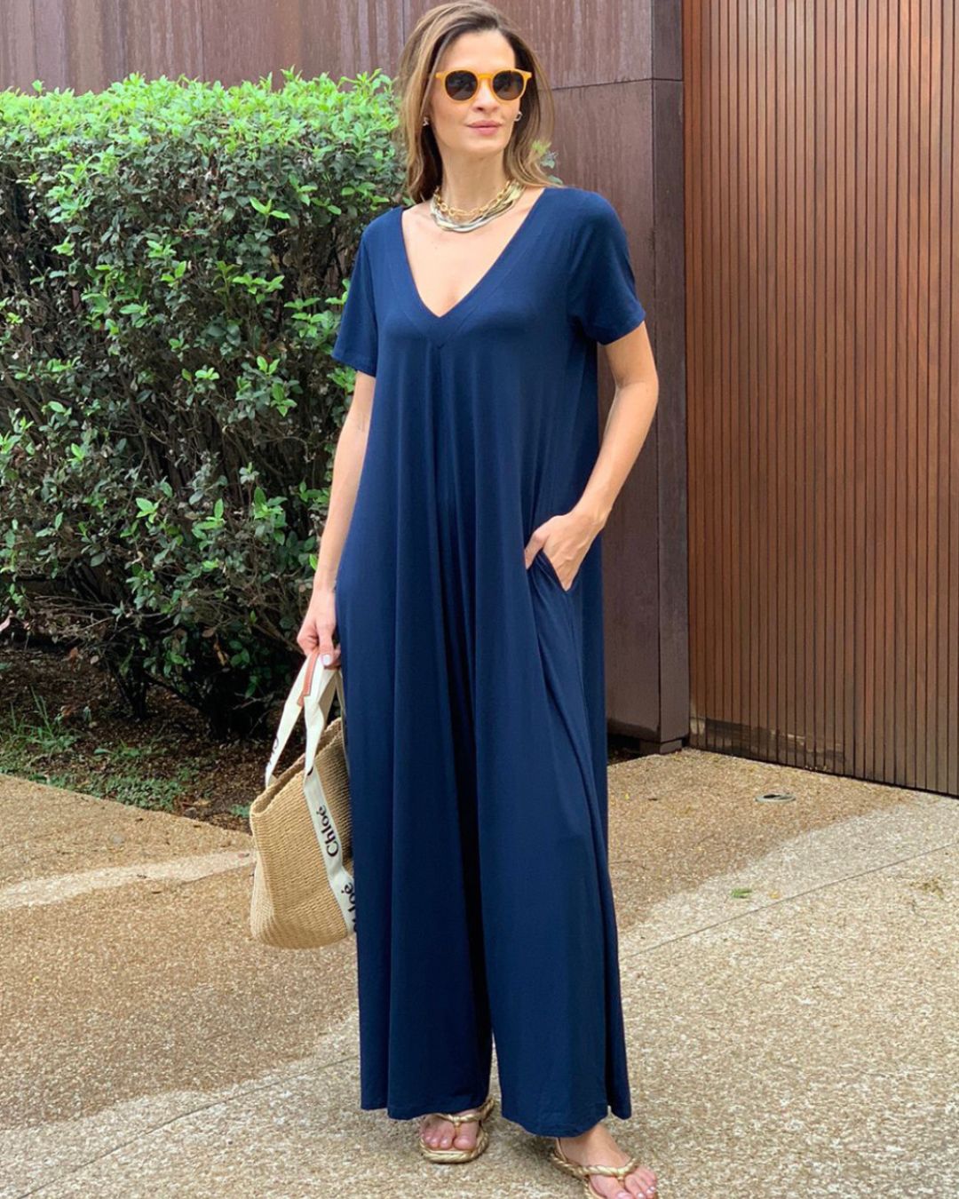 Macacão Pantalona, em viscose com elastano, c/ modelagem moderna e caimento perfeito. Ideal para um casual look com tênis ou sandálias, criando um visual moderno, cheio de frescor e conforto