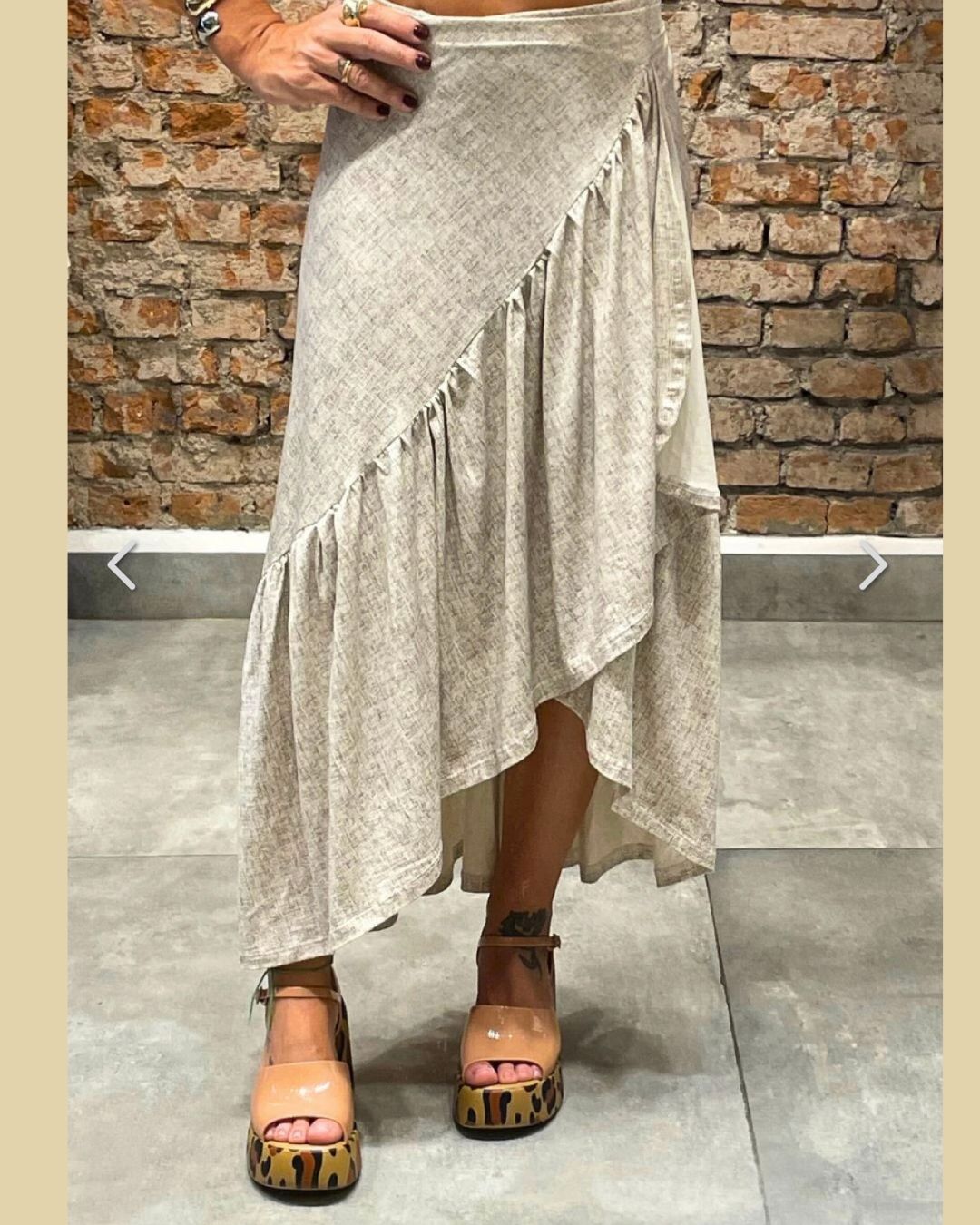 Saia Pareô 2 em 1 c/ babado - estampa linho