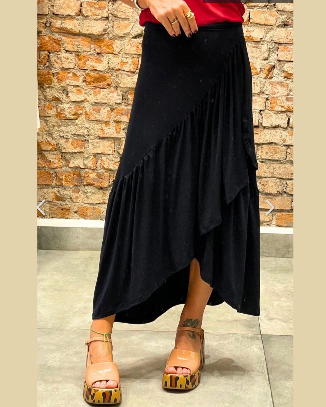 Saia Pareô com babados, que pode se transformar em um vestido em segundos, produzida em viscose com elastano. Para você poder criar produções incríveis .