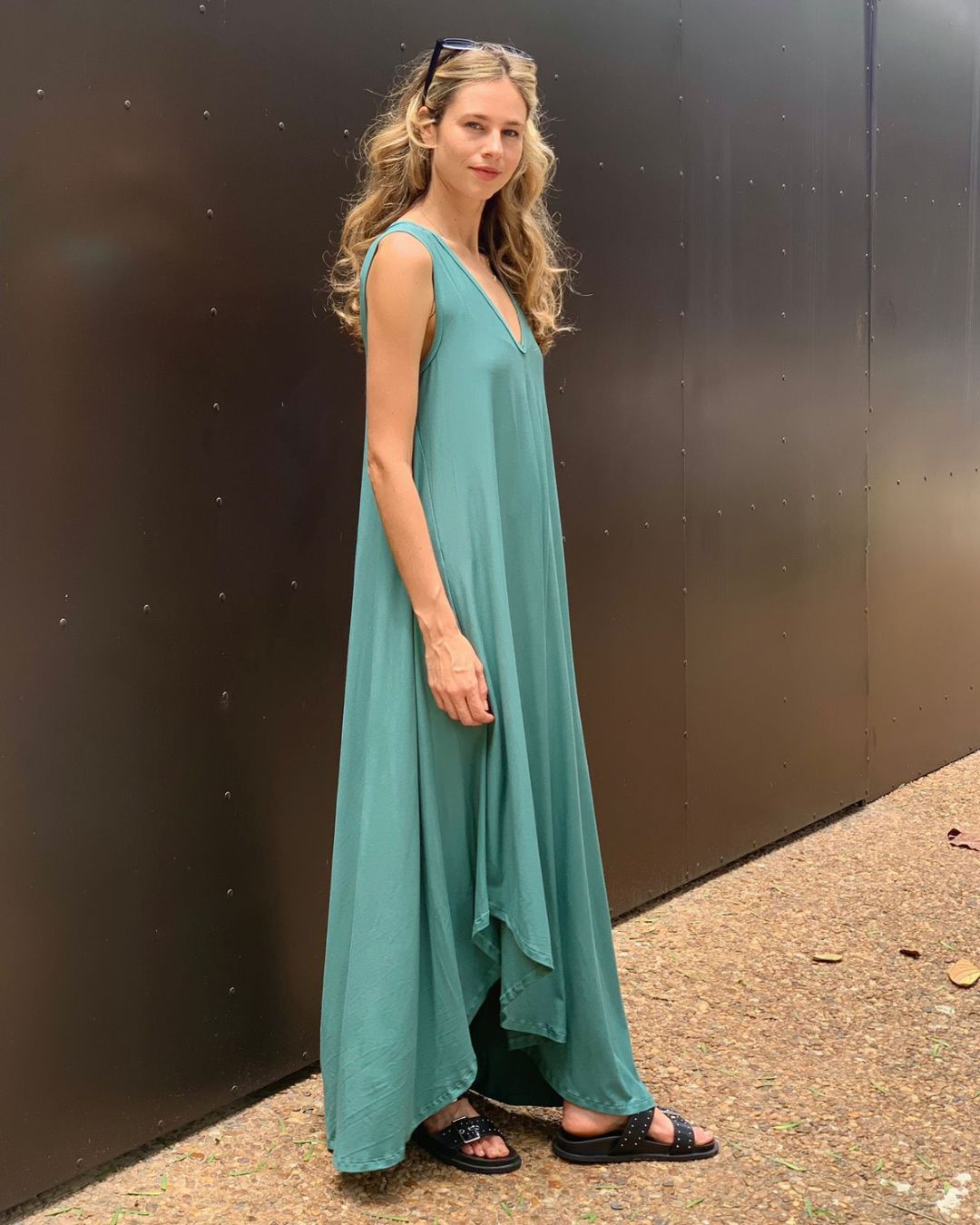 Vestido Fluido, com corte assimétrico, amplo e moderno, produzido em viscose com elastano, para um look casual elegante e confortável.